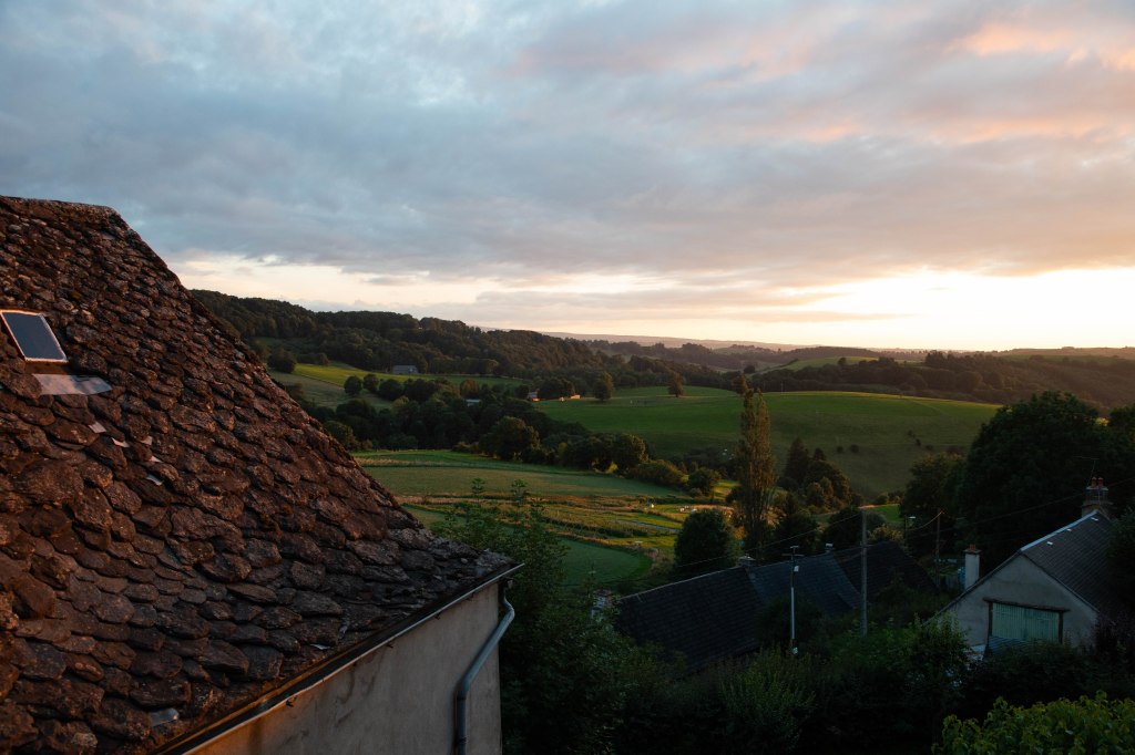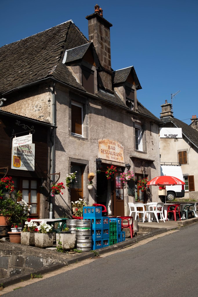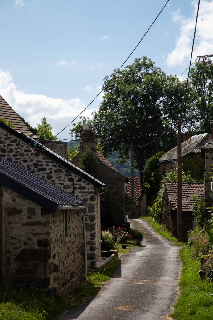 Arrivés sur le plateau, le paysage se transforme et les feuillus laissent place aux pins maritimes qui transforment le paysage. Mais toujours pas de mouettes à l’horizon, seulement des champs de blé et des prairies à l’infini qui terminent de nous accompagner sur le dernier quart nous menant à Peyrusse. Ce charmant village typiquement auvergnat nous accueille pour la nuit pour nous réveiller aux aurores, au son des cloches de l’église.