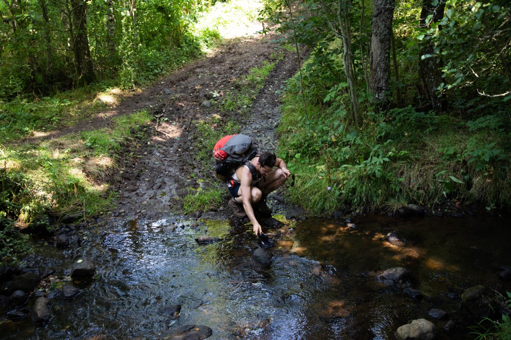 - 2L d’eau dans le sac chaque jour (pas mal d’endroits où on peut remplir les gourdes sur le chemin)