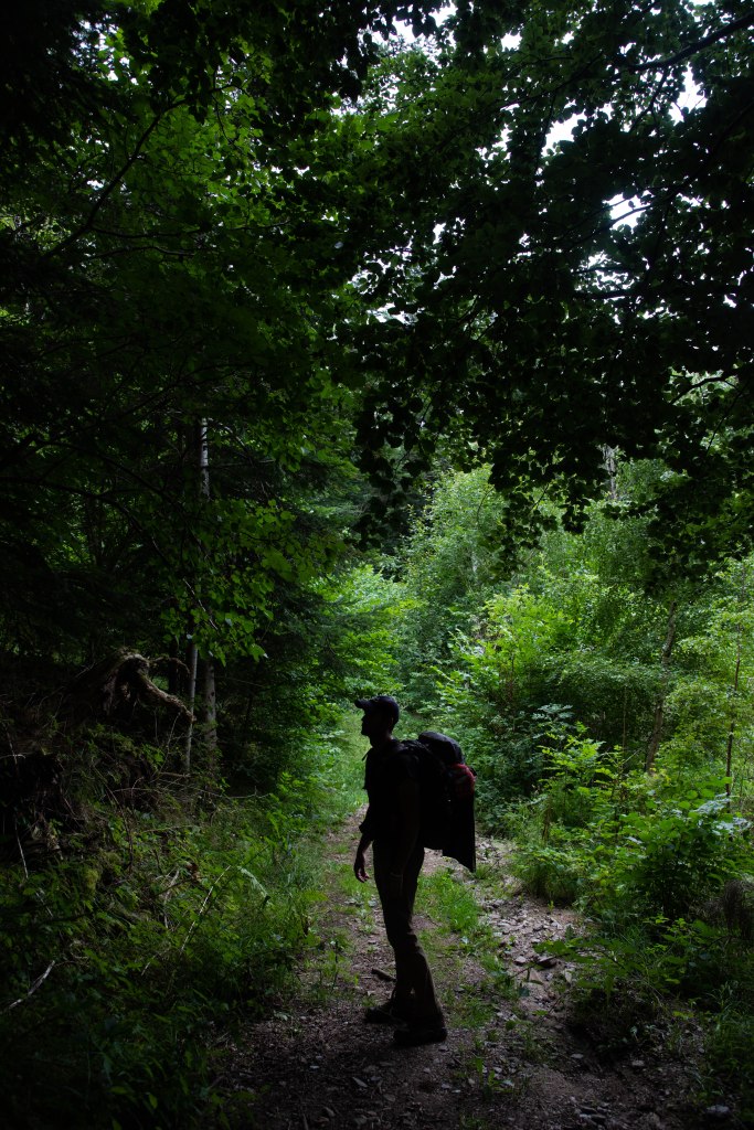 Un magnifique passage nous attend ensuite à l’ombre d’une foret féérique en direction de Lussaud. Les hêtres centenaires et leurs silhouettes biscornues nous accompagnent. A leurs pieds, des tapis de mousse habitée de centaines de champignons dont de belles girolles qui nous serviront de repas pour le soir. Sur les premiers mètres, on aperçoit encore les anciennes dalles d’un chemin que l’on imagine anciennement utilisé pour les carrioles avant que le sentier deviennent entièrement sauvage.