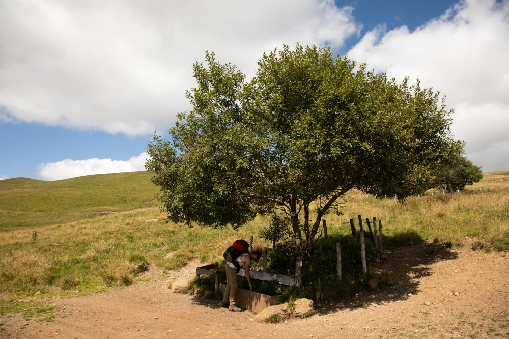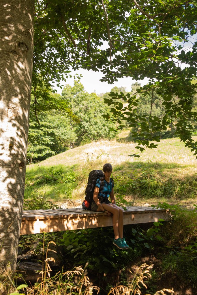 C’est une douce sensation de calme et d’apaisement qui s’empare de nous lorsque l’on fait étape dans ce village de montagne. De la vie il y en a, mais comme au ralenti. Cette ambiance pastorale invite à prendre son temps. C’est donc ce que nous faisons, assis sur la fontaine de la place principale dans laquelle nous trempons les pieds qui se recroquevillent instantanément au contact de cette eau de source glacée. C’est l’étape la plus courte du séjour mais après 7 jours de marche, les jambes commencent à être lourdes. Aujourd’hui, sur cette portion rapide et facile, nous pouvons prendre le temps.